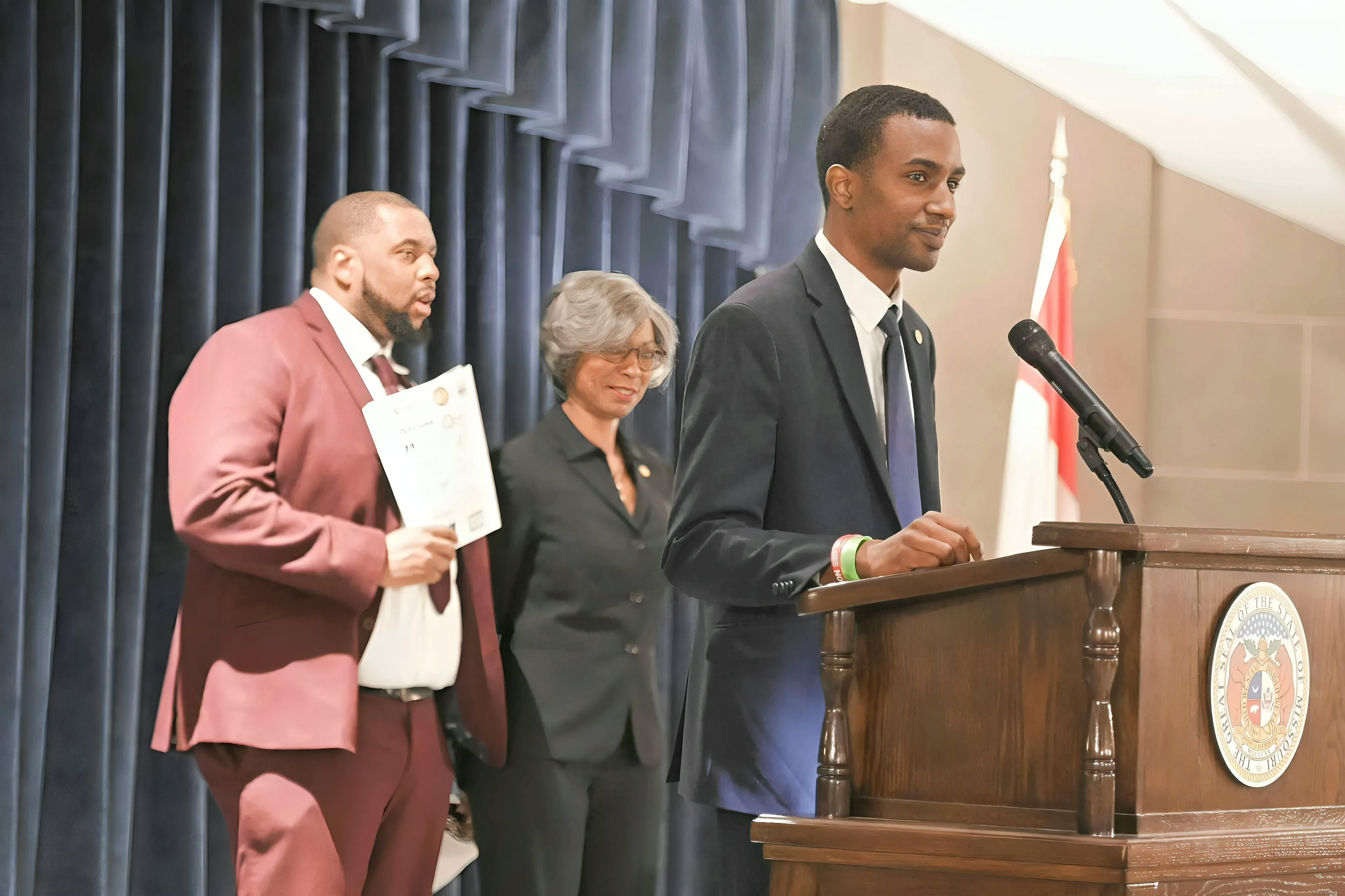 Rep. Reed carries the responsibility of being the first African American to represent Missouri House District 83 with pride and purpose. As the only Black man from St. Louis County in the Missouri House, he understands the significance of his role in a state with a complex history, and he embraces the opportunity to serve as a role model for young people of color across Missouri. Through his work with the Missouri Legislative Black Caucus, he has opened doors at the Capitol, hosting students from Harris-Stowe State University and Lincoln University, creating spaces where the next generation can see themselves reflected in leadership and feel inspired to step forward.